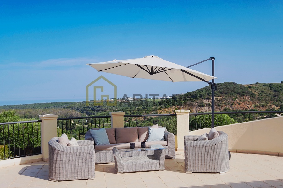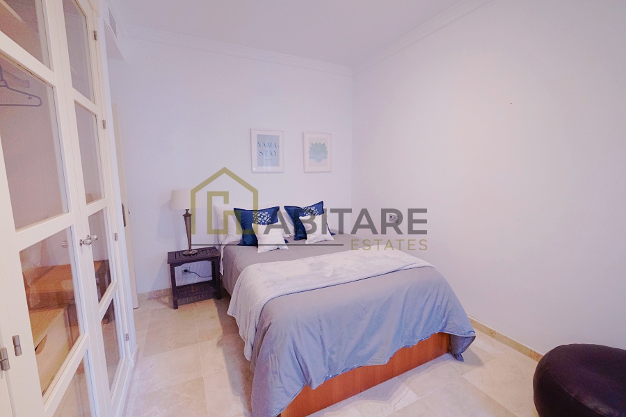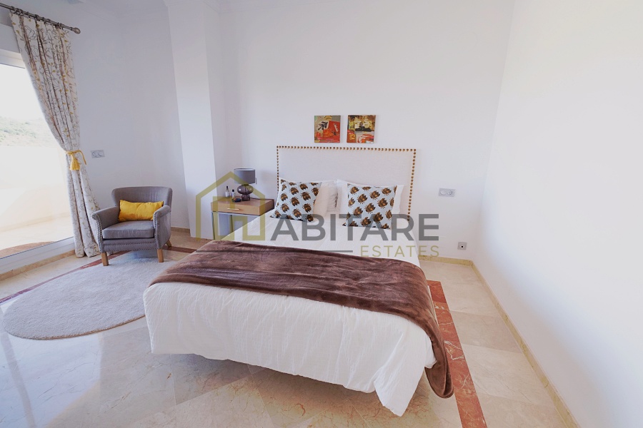 Fantástico apartamento listo para ser disfrutado en la Urbanización San Roque Club, disponible para alquilar por períodos cortos. Ha sido recientemente renovado y decorado con mucho gusto. Consta de hall de entrada, cocina independiente con lavadero y terraza, amplio salón comedor, tres dormitorios dobles con armarios empotrados, dos cuartos de baño, uno de ellos en suite, y un cuarto de aseo. Posee una gran terraza desde la que disfrutar de la tranquilidad de San Roque Club y de unas vistas maravillosas. En el precio del alquiler se incluyen tres plazas de garaje y una plaza para buggy. Ideal para vacaciones y para los amantes del golf ya que está junto al campo de golf The San Roque Club.