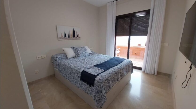 El segundo dormitorio también ofrece gran comodidad, con su propia terraza, armario empotrado y persianas eléctricas.
