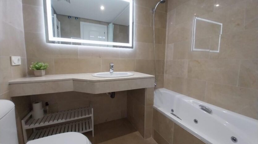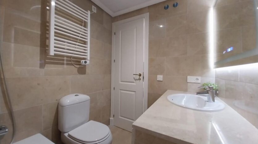 La vivienda se completa con un segundo baño completo, con elegantes acabados en mármol.