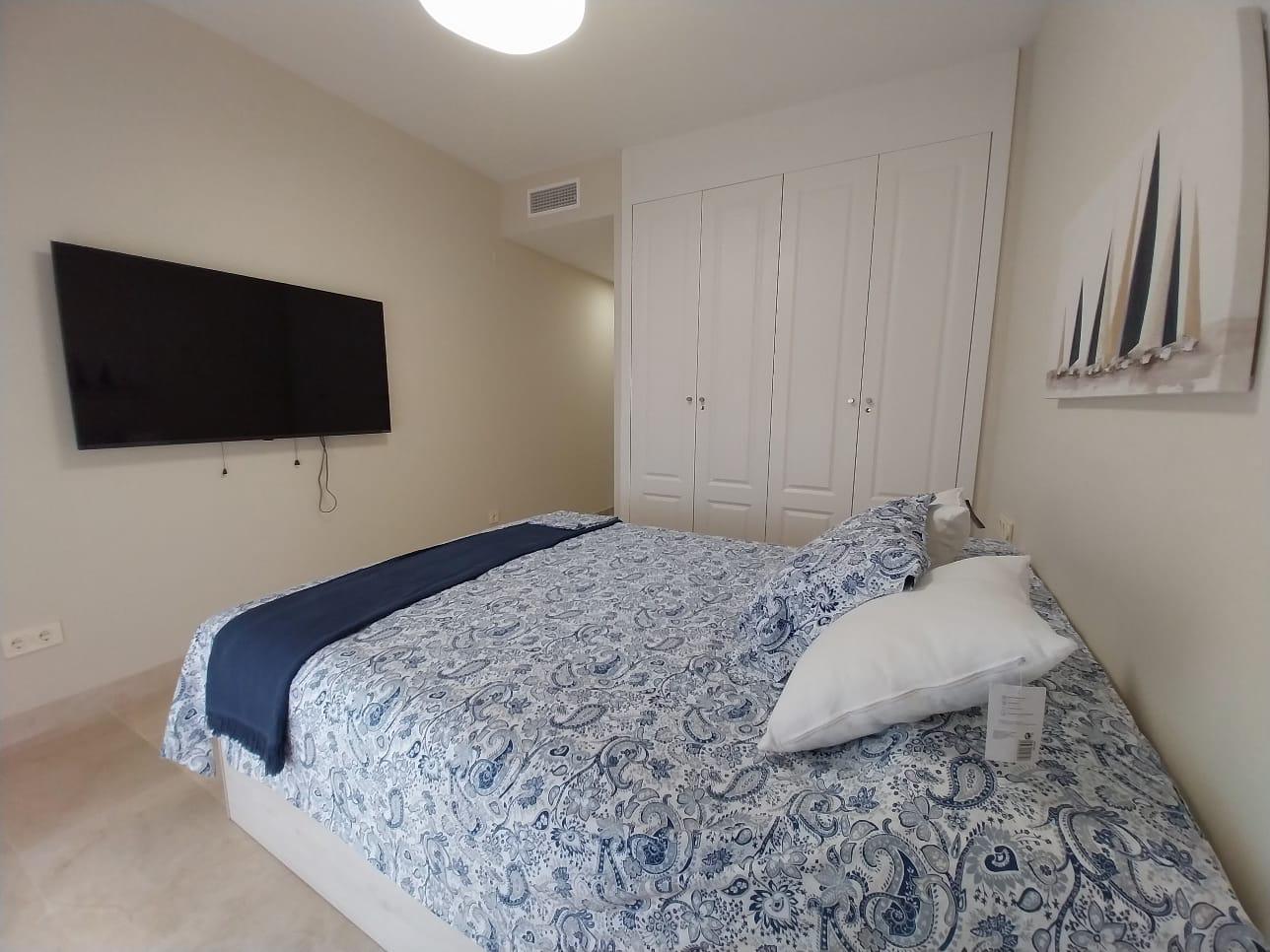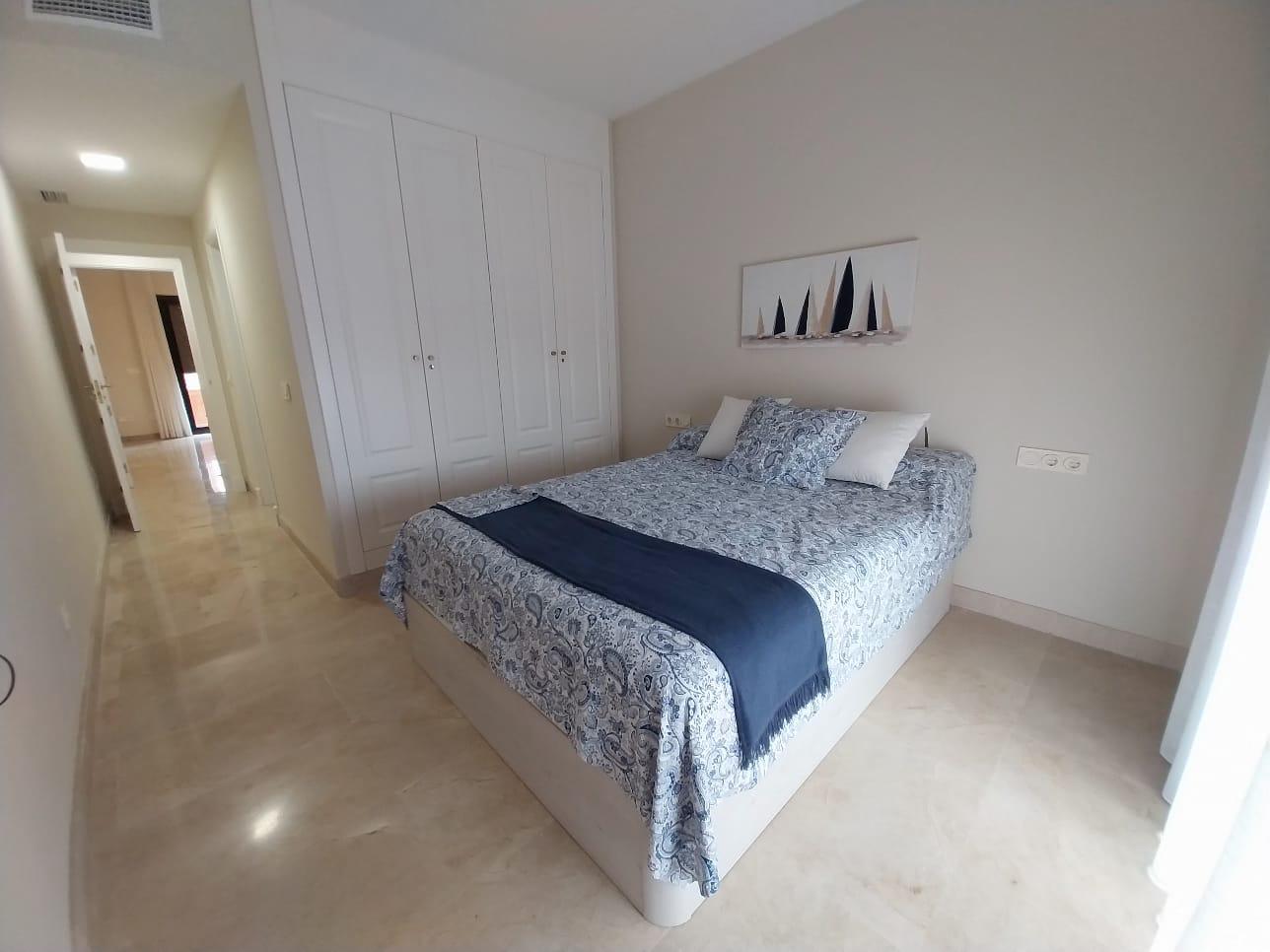 El dormitorio principal dispone de salida directa a la terraza, vistas al mar, armarios empotrados completamente equipados y un baño en suite con bañera de hidromasaje.