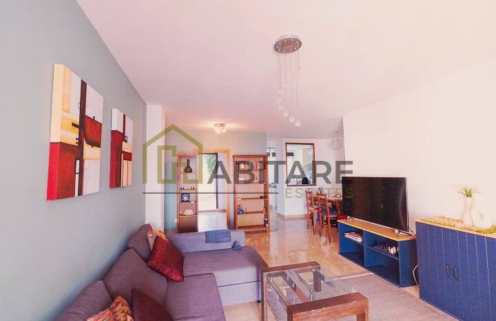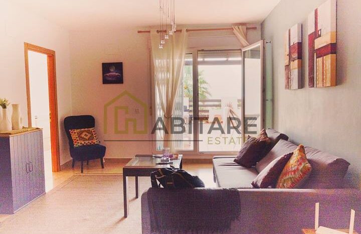 La vivienda se distribuye en tres dormitorios, todos con buena iluminación natural, dos baños completos, una cocina amueblada y funcional, y un amplio salón-comedor que se abre a una espectacular terraza de 40 m², ideal para disfrutar del clima mediterráneo durante todo el año.