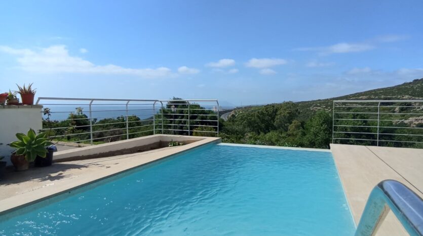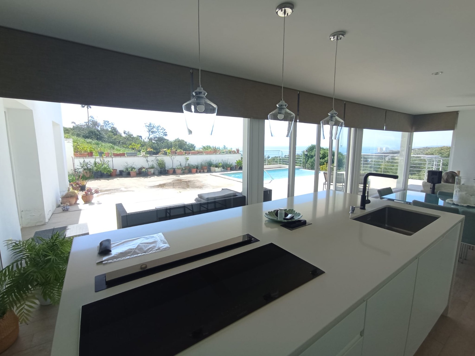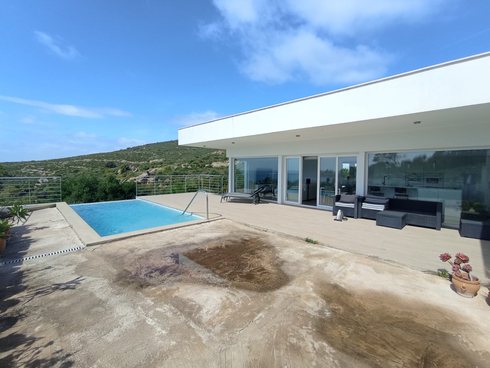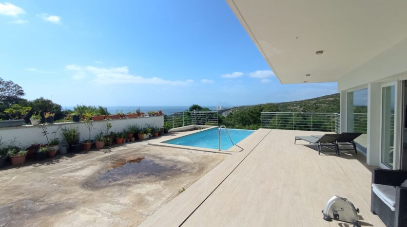 En el exterior, la villa cuenta con terraza interior y exterior, diseñadas para disfrutar del clima y las vistas. Destaca su magnífica piscina privada junto a una zona de barbacoa, creando el espacio perfecto para el ocio y el relax.