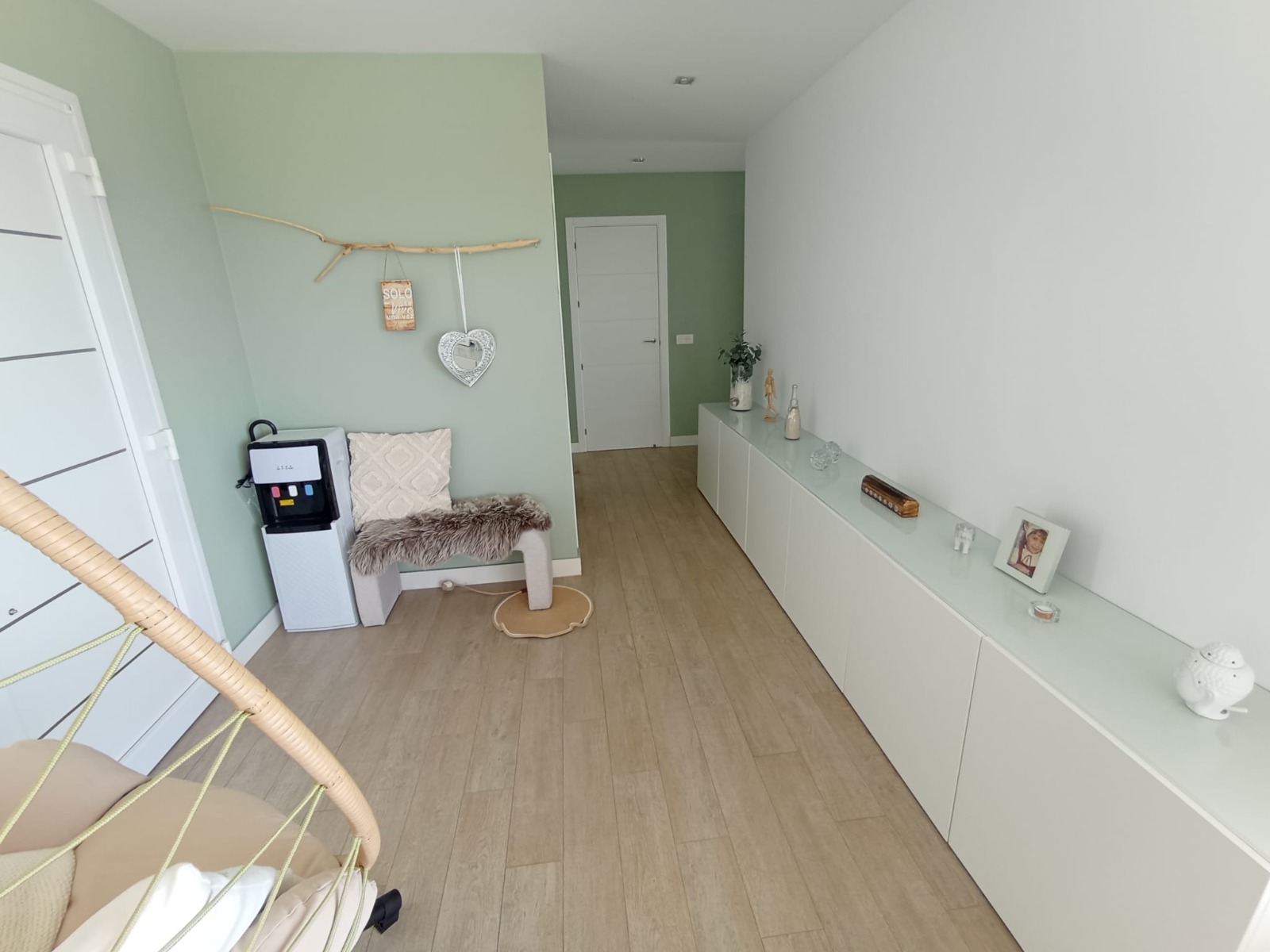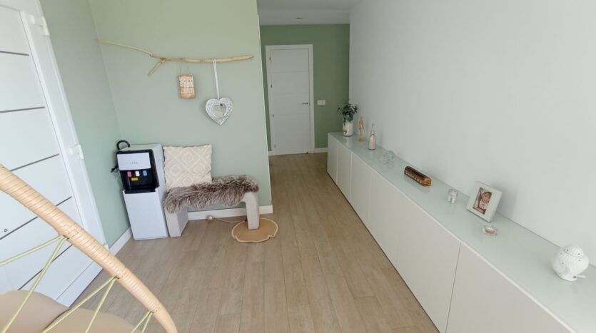 La vivienda cuenta con un acogedor hall de entrada que da paso a un amplio y luminoso salón, diseñado para aprovechar al máximo las impresionantes vistas al mar. Dispone de tres espaciosos dormitorios, dos de ellos también con vistas abiertas al mar, que aportan una sensación única de calma y bienestar. El dormitorio principal incluye un práctico vestidor, aportando un extra de comodidad.