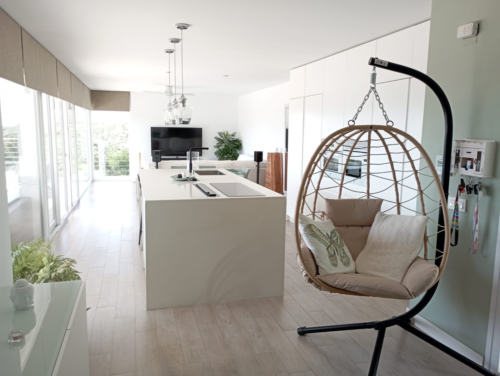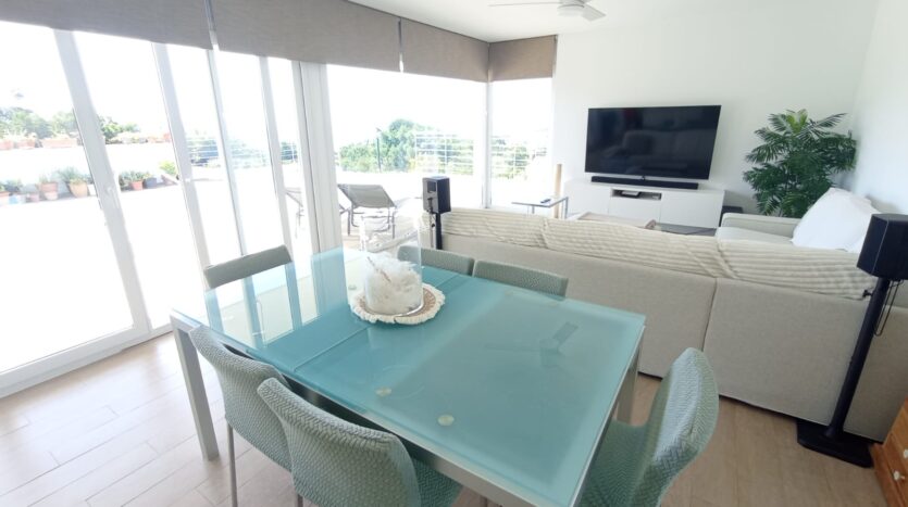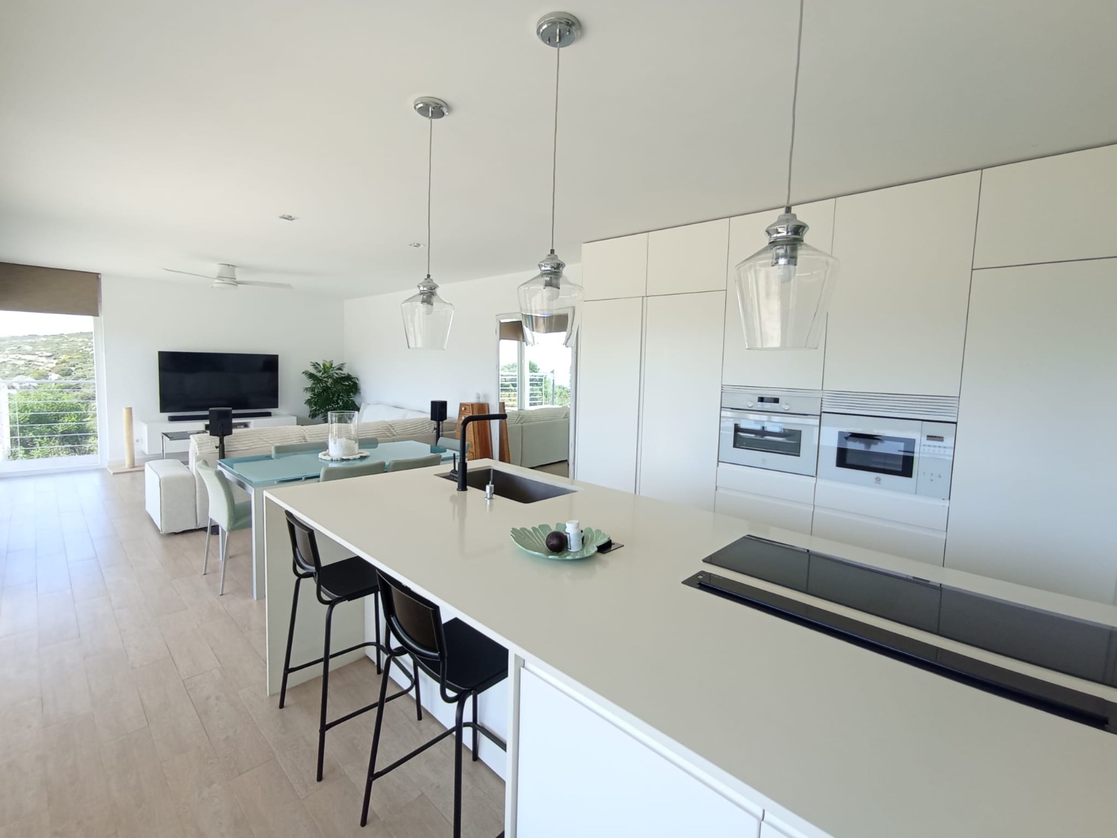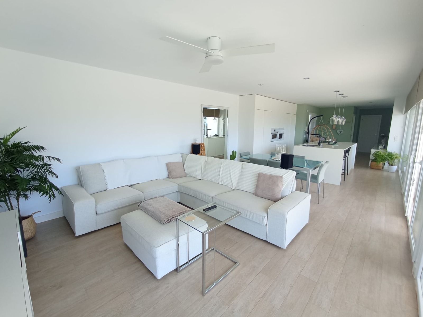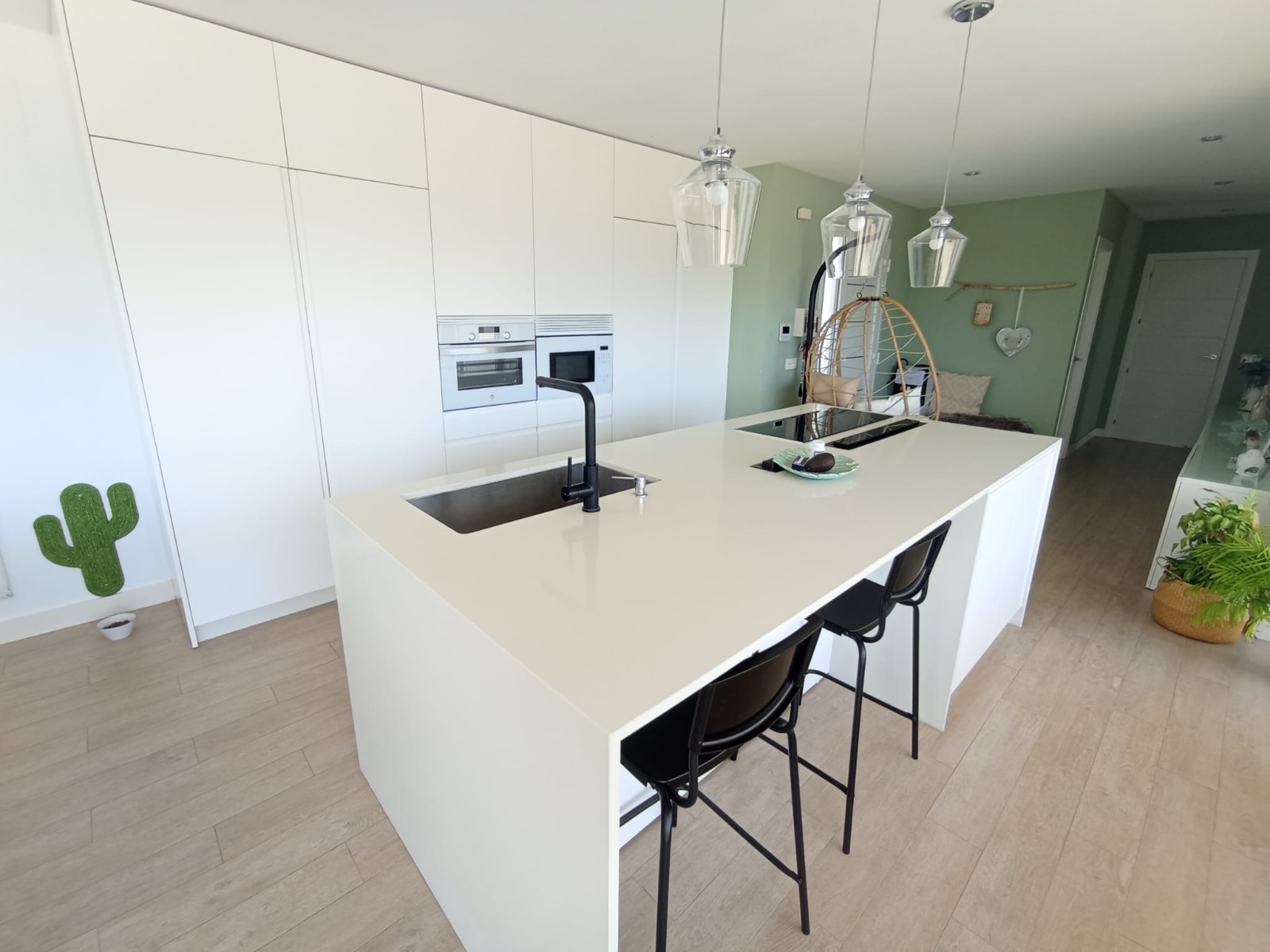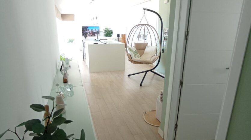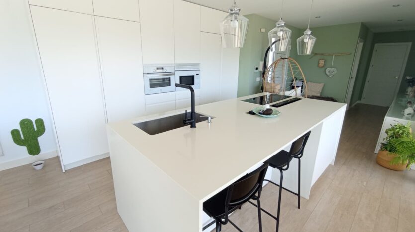 La propiedad ofrece dos baños completos, acabados con materiales de calidad, y una moderna cocina con isla central, completamente amueblada y equipada, perfecta tanto para el día a día como para reuniones familiares o con amigos.